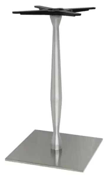 Centrální stolová podnož Slavomír je k dispozici s čtvercovou nebo obdélníkovou základnou a je vyrobena z kombinace broušeného nerezu a hliníku. Díky použitým materiálům zaručuje pevnost a stabilitu i při vyšší zátěži v prostorech jako restaurace, jídelny, kavárny či bary. K podnoži patří montážní kříž pro stolní desky a součástí balení jsou vymezovací patky pro vyrovnání výšky. Tento design působí moderně a dlouhodobě drží desku na místě, což zajišťuje bezproblémový provoz i v náročných komerčních podmínkách. Vhodná volba pro interiéry, kde je vyžadována odolnost a snadná údržba.