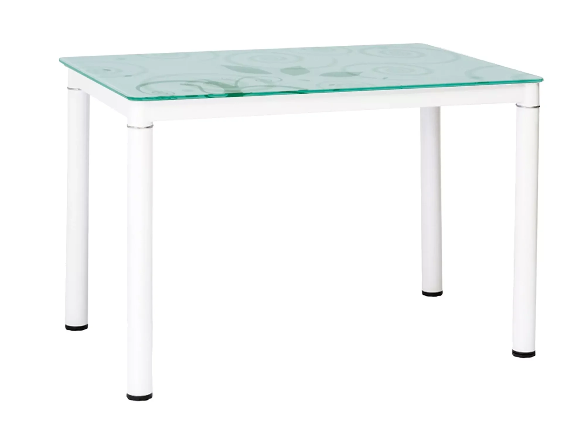 Stůl Damar DAMARB má desku z tvrzeného skla v bílé barvě, která působí lehce a elegantně. Konstrukce je doplněna kovovým rámem s povrchovou úpravou, která zajišťuje pevnost a dlouhou životnost.