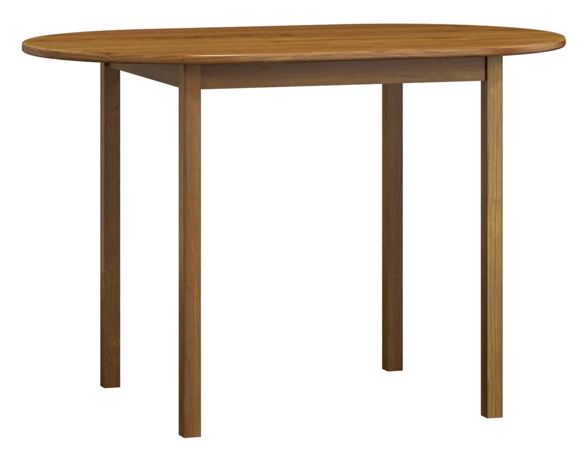 Oválný stůl DASHEN 4 je vyroben z masivní borovice a deska má tloušťku 2 cm. Povrch je mořený do odstínu dubu, což dodává teplý a příjemný vzhled. Konstrukce z masivní borovice zajišťuje pevnost a dlouhou životnost pro každodenní použití. Rozměry jsou 115 cm šířky, 75 cm výšky a 70 cm hloubky. Dodáváno v demontu.
