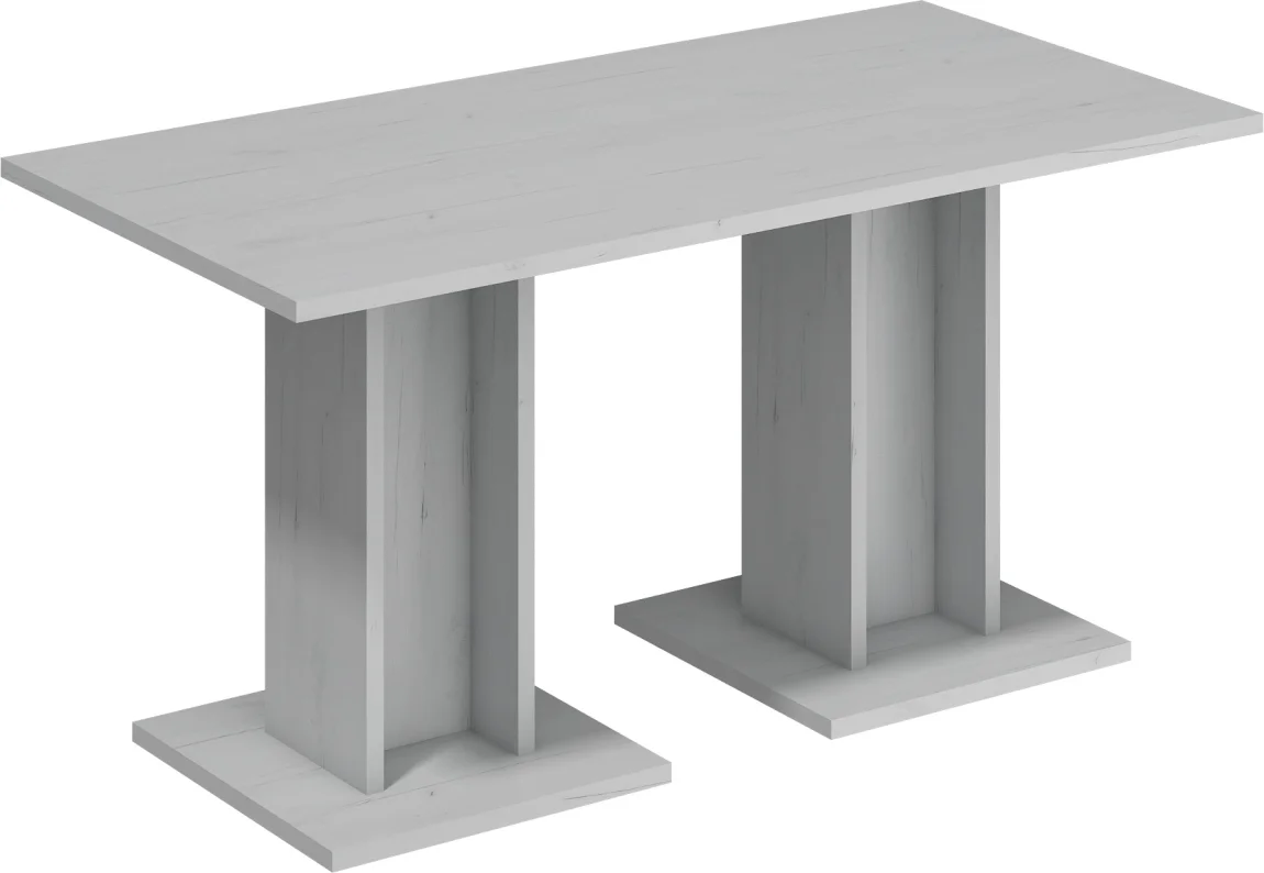 Stůl GURLAN je prostorný kousek s elegantním vzhledem v barvě craft bílé. Deska je vyrobena z lamina tloušťky 16 mm a hrany jsou kryté ABS páskou 0,6 mm, což zajišťuje odolnost vůči opotřebení.