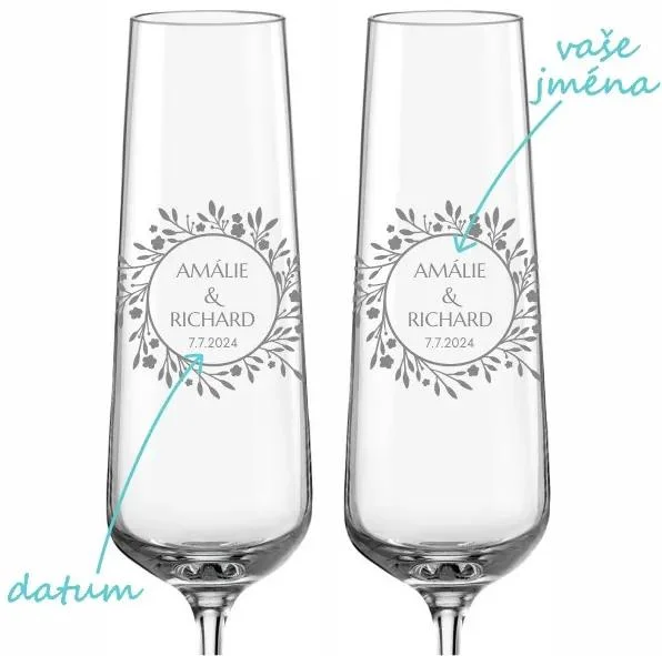 Tyto skleničky se vyznačují vysokou odolností vůči mechanickému poškození a jemně zabroušeným okrajem, což zaručuje jejich dlouhou životnost a elegantní vzhled. Díky možnosti personalizace pískováním jmen a data se stanou jedinečným a nezapomenutelným dárkem, který bude symbolizovat váš společný příběh. Při objednávce doporučujeme zvážit přidání dárkové krabičky s saténovým povrchem, která skleničky nejen zkrášlí, ale také je ochrání při přepravě. Tento produkt je perfektní volbou pro ty, kteří chtějí své svatební chvíle ozvláštnit originálním a trvalým detailem, jenž bude připomínat tento významný den po dlouhá léta.