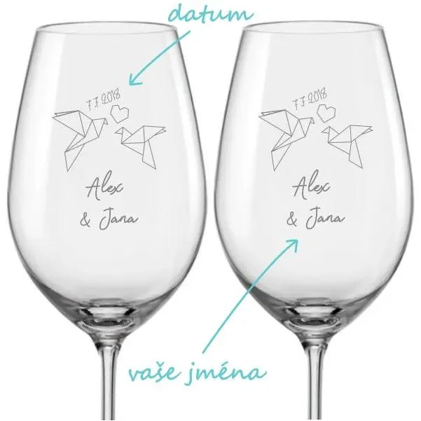 Parametry produktu Svatební skleničky na víno Hrdličky Origami 2ks