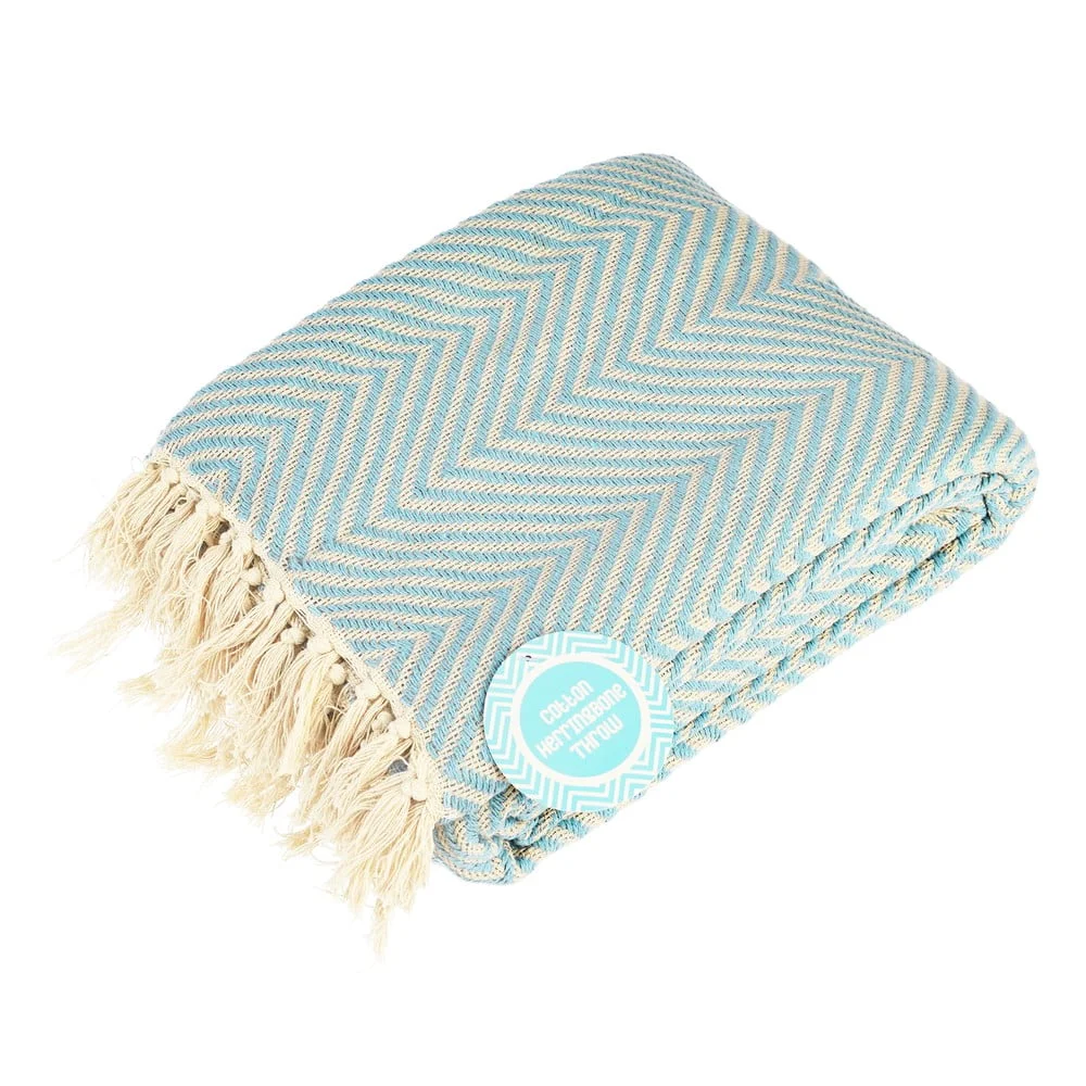 Světle modrá bavlněná deka 150x235 cm Herringbone Deky