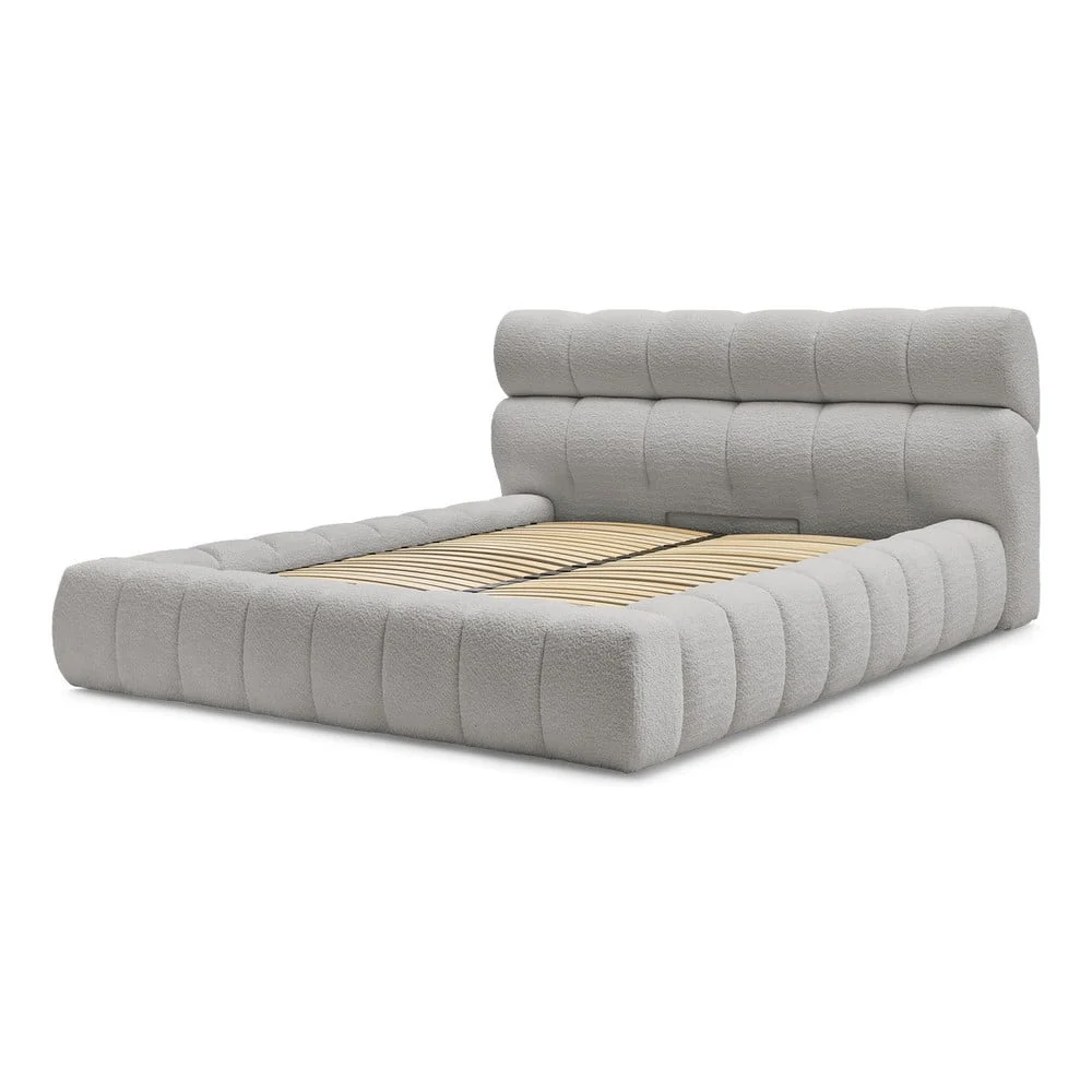 Světle šedá dvoulůžková postel s úložným prostorem 160x200 cm Mont Blanc Dvoulůžkové postele