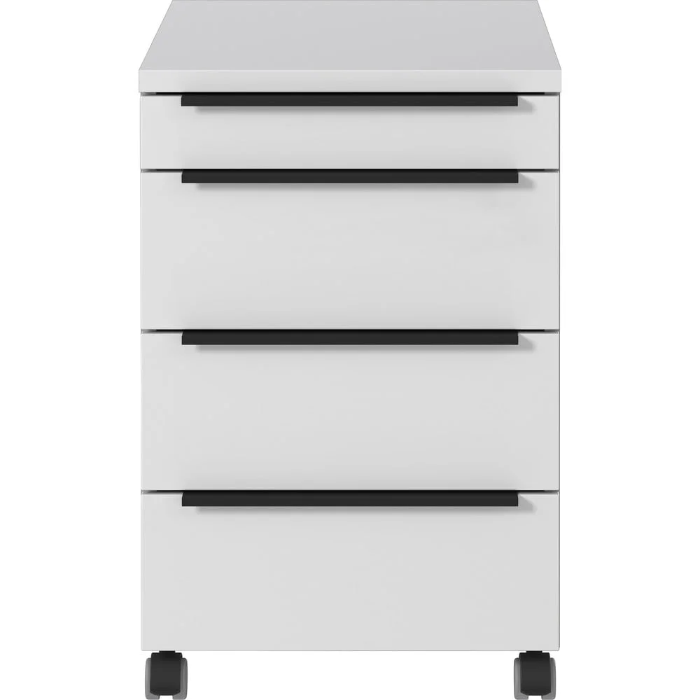 Praktická světle šedá skříňka Mailand s rozměry 42x63x60 cm je ideálním doplňkem do vaší kanceláře nebo pracovního prostoru. Nabízí čtyři prostorné zásuvky, přičemž horní je vybavena přihrádkou na drobnosti s nosností 3 kg, zatímco ostatní zásuvky unesou až 10 kg, což umožňuje efektivní organizaci dokumentů a kancelářských potřeb.