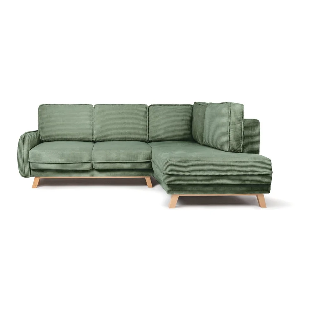 Objevte komfortní a stylovou rohovou pohovku Tori v jemné světle zelené barvě, která je ideální pro moderní obývací pokoj. Díky své rozkládací funkcionalitě nabízí nejen pohodlné posezení, ale i praktické lůžko pro hosty. Manšestrový povrch zajišťuje příjemný pocit a dlouhou životnost, zatímco pravý roh umožňuje snadné přizpůsobení prostoru. Tato pohovka je perfektní volbou pro ty, kdo hledají kombinaci elegance, funkčnosti a útulnosti.