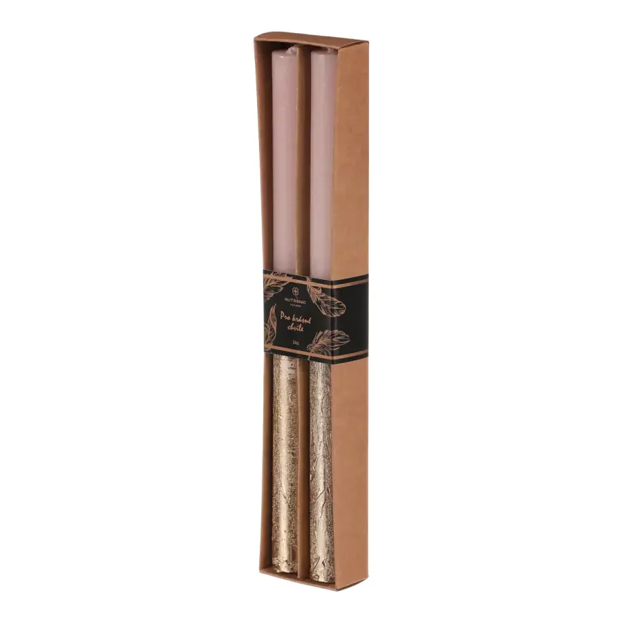 Vytvořte romantickou a relaxační atmosféru díky kónickým svíčkám SVT502 PINK z 100% parafínu. Růžovo-zlaté provedení dodává prostoru elegantní nádech a skvěle doplňuje různé dekorace. V balení naleznete dva kusy a každá svíčka vydrží až 10 hodin hoření. Světlo z těchto svíček si můžete užít při slavnostních příležitostech i během klidného večera doma. Pro jemné zvýraznění jejich krásy doporučujeme stylový svícen z naší nabídky, který jejich vzhled ještě podtrhne. Skladujte mimo dosah dětí a zapalujte na bezpečném místě.
