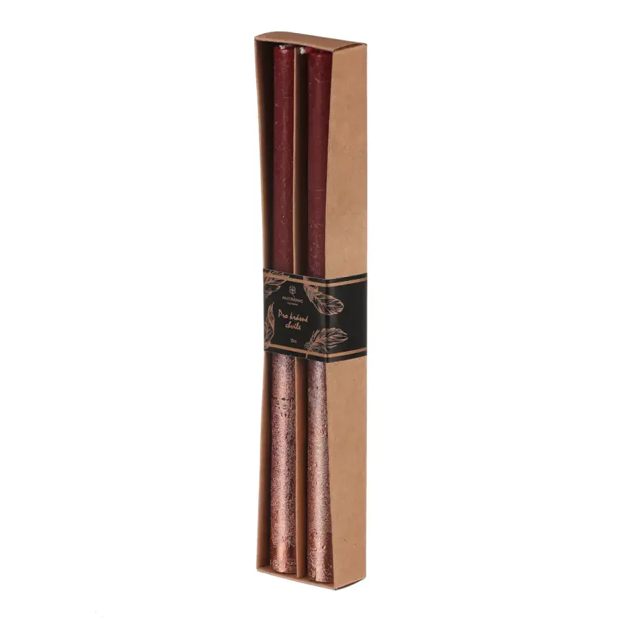 Vytvořte si s kónickými svíčkami SVT502 RED neopakovatelnou atmosféru v kombinaci červené a měděné barvy. Svíčky jsou vyrobené z 100% parafínu a balení obsahuje 2 kusy, z nichž každá hoří až 10 hodin.