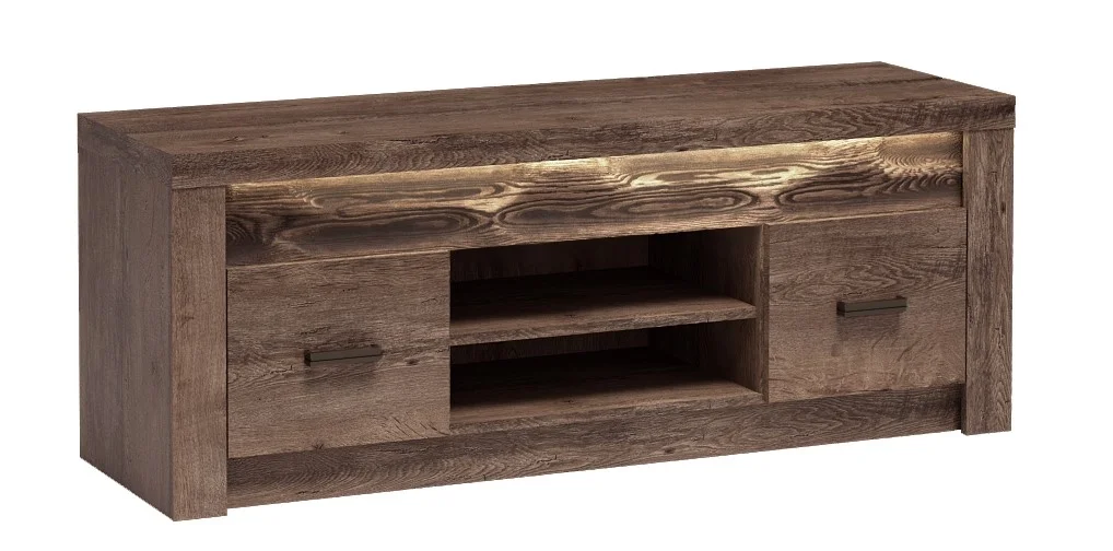 Konstrukce je navržena pro efektivní využití prostoru a působí nadčasově s čistými tvary. Rozměry: 137 cm šířky, 53 cm výšky a 42 cm hloubky; barevné provedení: jasan tmavý. Materiál: laminát s ABS hranami 0,5–0,8 mm a kovové úchyty dodávají stabilitu. Do dekorativní rýhované lišty je integrováno LED osvětlení, které jemně zvýrazní rustikální dojem masivního dřeva. Dodáváme v demontovaném stavu. Pro moderní obývací pokoj je vhodné k dalším prvkům řady SWED a díky odolné povrchové úpravě se snadno udržuje a čistí.