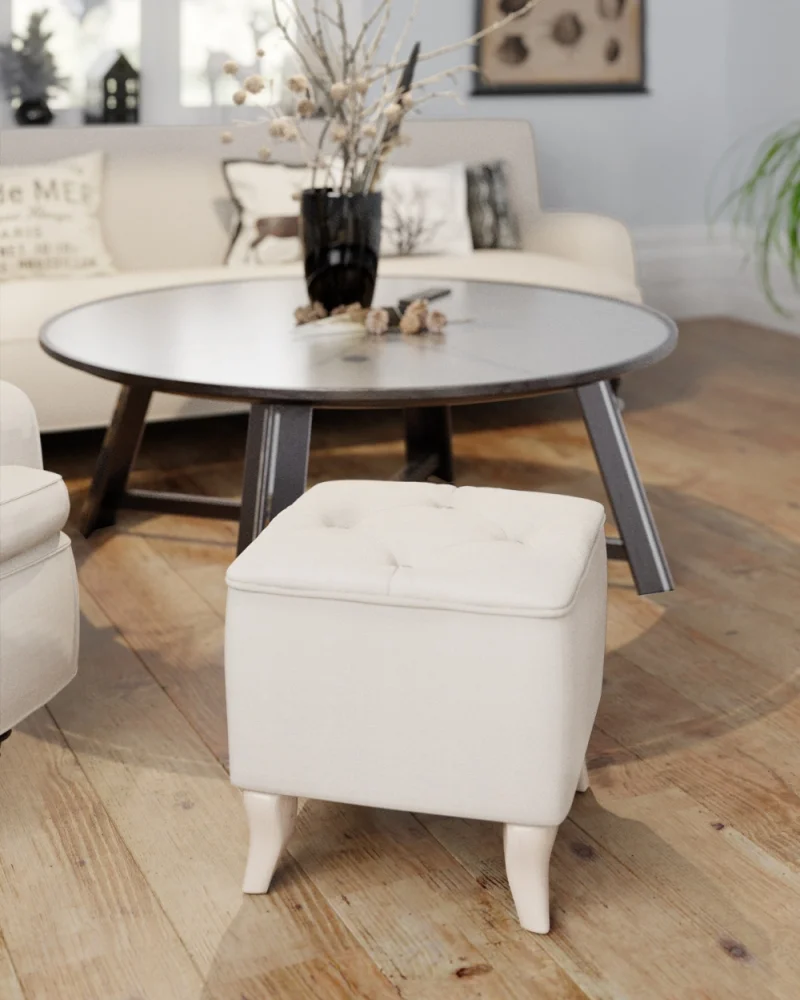 Taburet SIMUL v odstínu krémová cosmic 10 se hodí do každého stylového interiéru. Rozměry: 47 cm šířka, 42 cm výška a 47 cm hloubka, výška nožek 14 cm zajišťují pohodlné sezení a vzdušný vzhled.