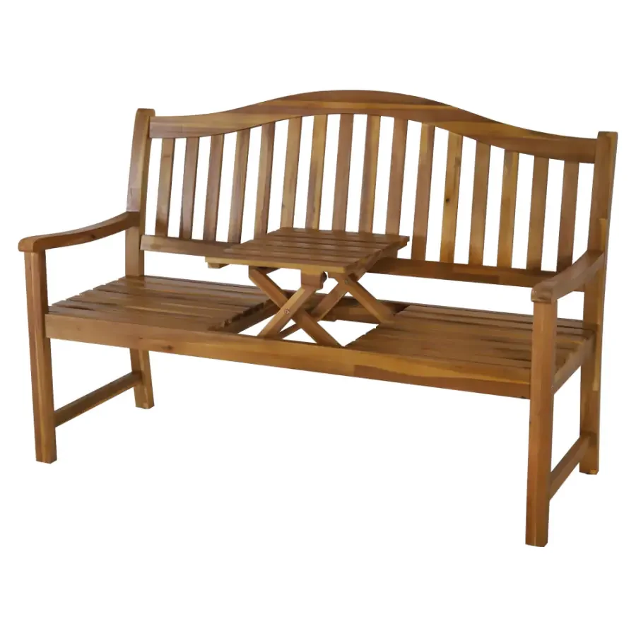 Lavička TAIMA se stolkem z masivní akácie zaujme svou přírodní krásou na každé zahradě, terase i verandě. Je vyrobena z masivního akáciového dřeva v přírodním odstínu a díky jemně zaoblenému opěradlu a ergonomicky tvarovaným područkám poskytuje pohodlné sezení.