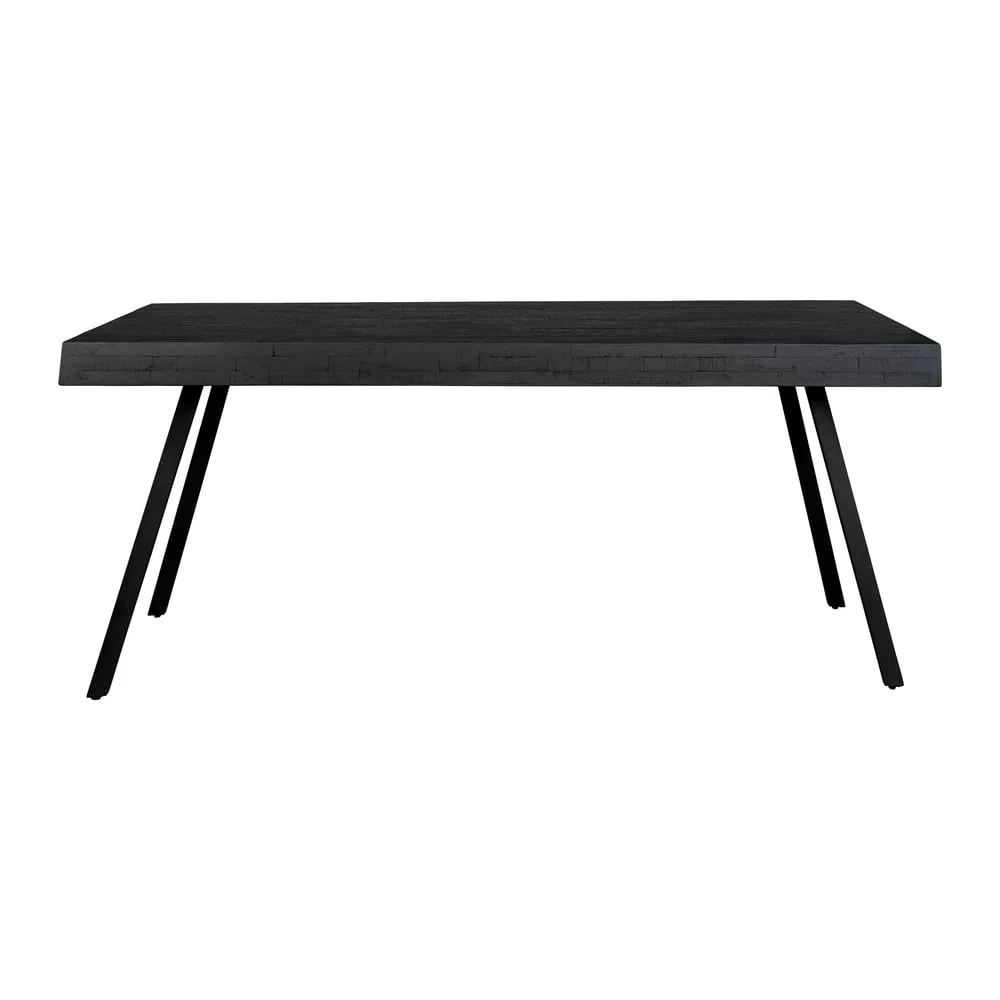 Moderní jídelní stůl značky White Label je ideální volbou pro vaše jídelní kouty. Jeho vrchní deska je vyrobena z recyklovaného teakového dřeva a je opatřena matným černým povrchem s ochranným lakem, který zvýrazňuje přírodní strukturu materiálu.