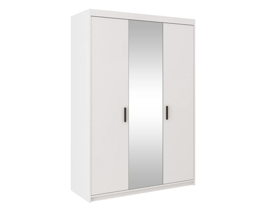 Šatní skříň TEKEN 3D v bílé barvě kombinuje styl s funkčností a nabízí praktické řešení pro každou ložnici díky vestavěnému zrcadlu. Rozměry: šířka 133 cm, výška 190,5 cm a hloubka 53 cm.
