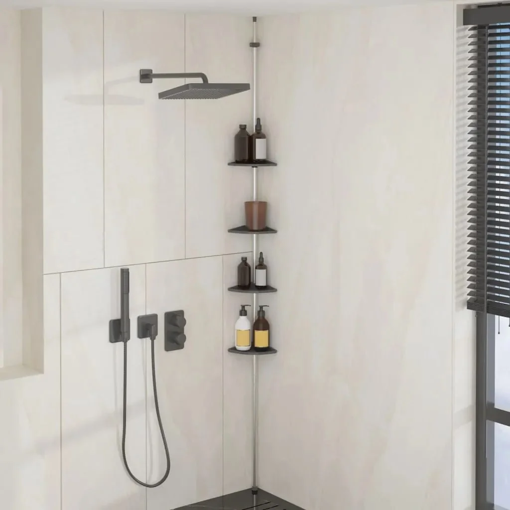 Díky nastavitelné výšce v rozmezí 235 až 280 cm a variabilním polohám polic si regál snadno přizpůsobíte svým potřebám i rozměrům koupelny. Tento moderní doplněk je dostupný ve stříbrné a šedé barvě, je vyroben z odolných materiálů jako hliník, PS, PA a TPE. Ideální volba pro ty, kteří hledají spojení stylu a funkčnosti v koupelně. Doporučujeme ho všem, kteří chtějí efektivně využít rohový prostor a udržovat pořádek při sprchování.