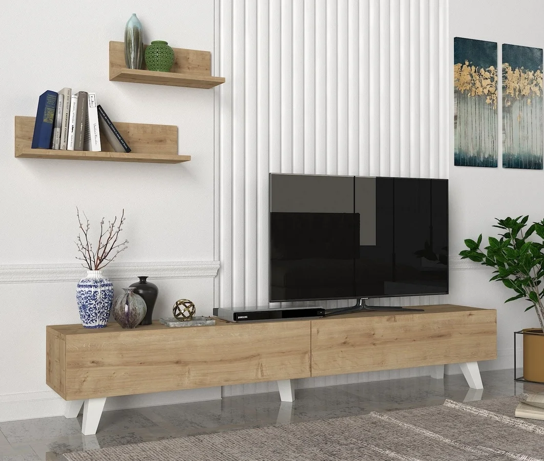 Televizní stolek ALBORZ v nadčasovém sapphire provedení kombinuje dvě výklopné dvířka a dvě praktické police pro pohodlné ukládání elektroniky. Je vyroben z kvalitního lamina tloušťky 18 mm s PVC lemováním, které zajišťuje odolnost proti poškrábání a snadnou údržbu. Deska i police jsou sladěny v barvě sapphire a dodávají nábytku elegantní vzhled. Rozměry: stolek 180 x 32,6 x 31,3 cm (š x v x h); police 60 x 14,5 x 14,5 cm. Materiál: LTD (laminát). Dodání v demontu pro snadnou montáž doma.