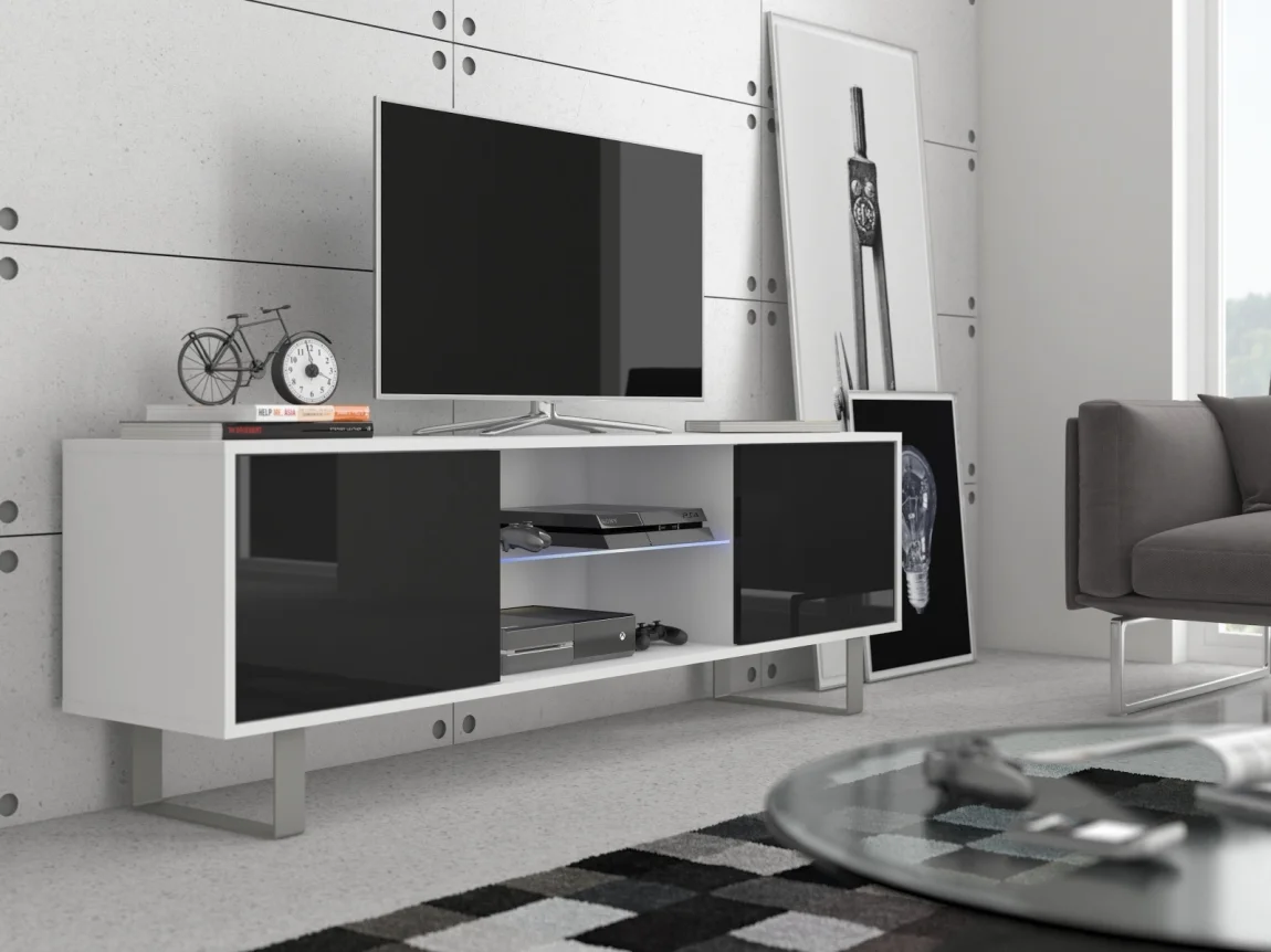 Stylový televizní stolek BOKARO 2 v kombinaci bílé a černého lesku dodá moderní vzhled každému obývacímu pokoji. Rozměry 160 × 53 × 36 cm poskytují dostatek místa pro televizi i doplňky, zatímco pevná LTD deska o tloušťce 16 mm zaručuje stabilitu.