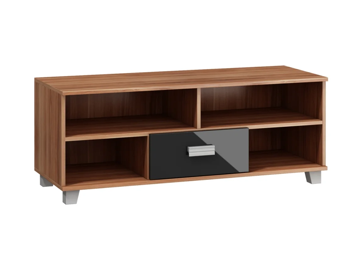 Prostorný televizní stolek KEATING spojuje moderní design s praktickým úložným prostorem. Povrch kombinuje švestku wallis a vysoký lesk černé barvy; přední a boční díly jsou z lamina tloušťky 16 mm, což zajišťuje pevnost a stabilitu. Stolek nabízí šuplík pro drobnosti a otevřený prostor pod ním pro mediální zařízení a příslušenství. Jeho rozměry 120 × 47 × 47 cm se hodí do většiny obývacích pokojů a dodává se v demontu. Záruka 5 let potvrzuje dlouhodobou spolehlivost a kvalitu.