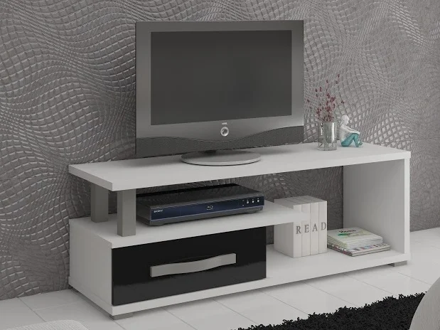 Televizní stolek LEHUA bílý/černý lesk 118×43 cm Televizní stolky