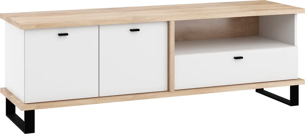 Televizní stolek ORSOLA 2D1S ze sektorové řady nabízí dvě dvířka, jednu zásuvku a otevřenou polici. Tiché dovírání dveří a zásuvek zajišťuje tichý chod při každodenním používání. Rozměry 160 x 54 x 45 cm (š x v x h) a lamino tloušťky 16/25 mm s ABS hranami, nožky z černého kovu výšky 12 cm pak dotvářejí stabilní základ. Barva kombinuje dub sonoma a bílou pro svěží, moderní vzhled a dodáván je v demontu. Tento kousek se hodí do obývacího prostoru, usnadní organizaci médií a drobných doplňků a díky odolnému materiálu i snadné údržbě se stane praktickým centrem vaší domácnosti.