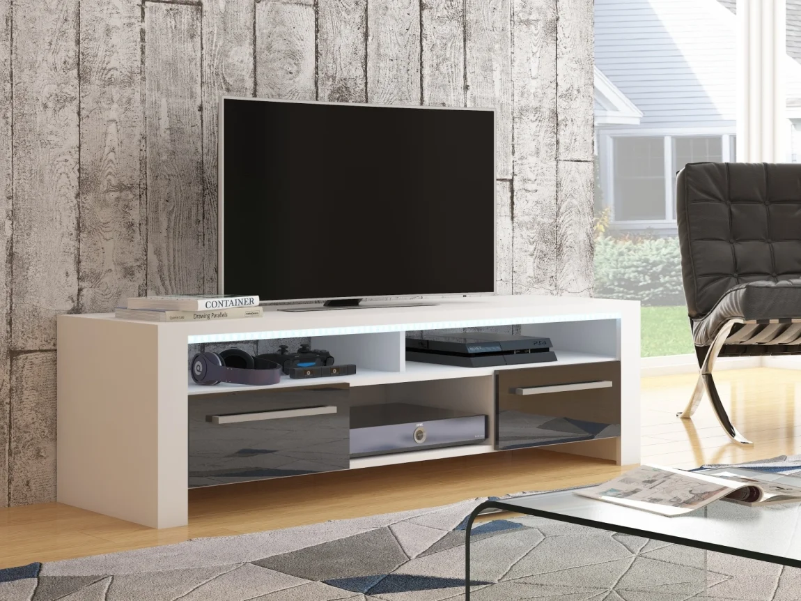 Elegantní televizní stolek s bílým a černým vysokým leskem dodá moderní vzhled každé obývací místnosti. Rozměry 140 × 41 × 42 cm nabízejí dostatek místa pro televizi a mediální zařízení, zatímco 16 mm tloušťka materiálu LTD zaručuje pevnost a odolnost.