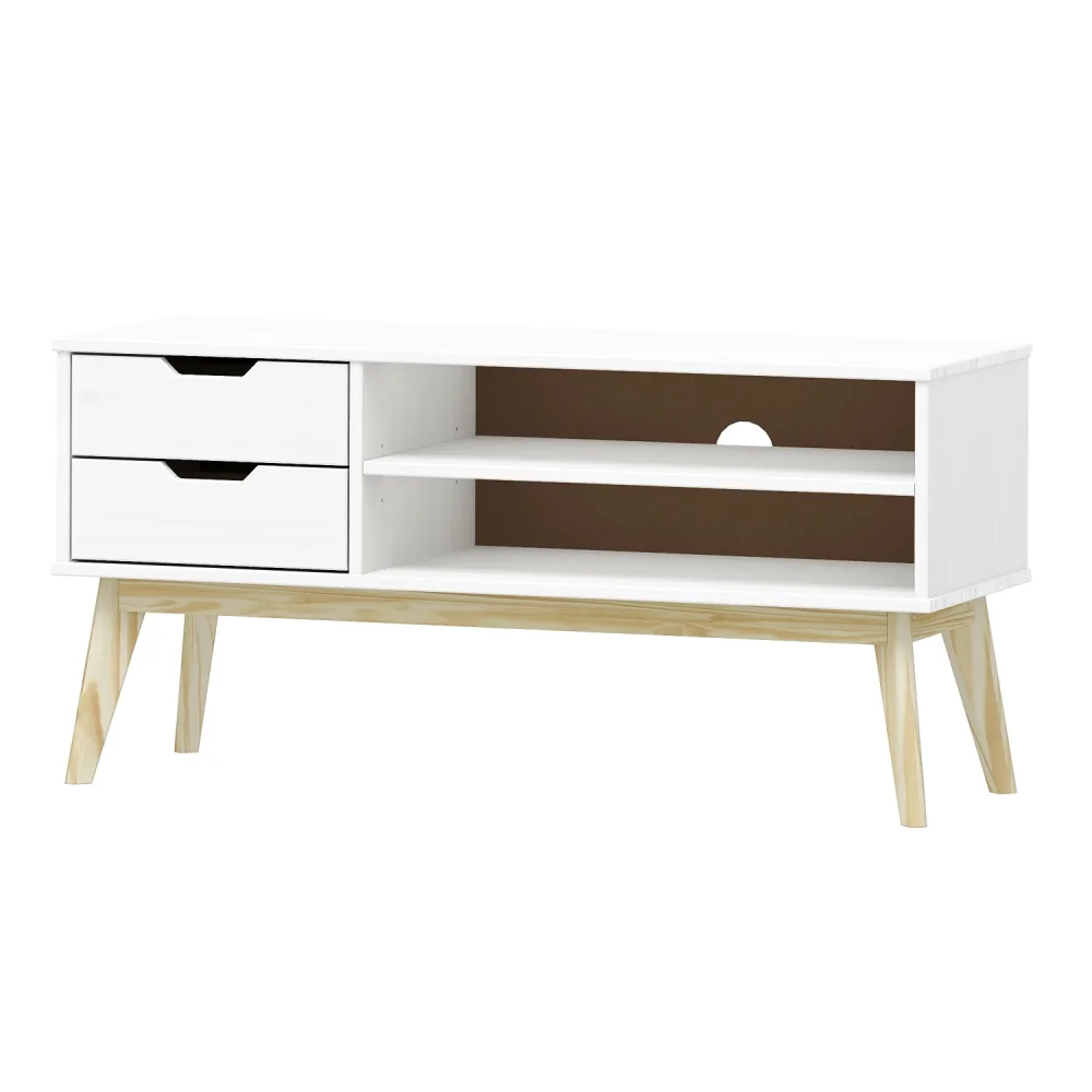 Televizní stolek SIMIR 2S – masiv borovice, bílý lak Televizní stolky
