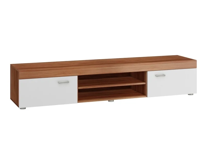 Televizní stolek SIWANI v elegantní kombinaci barev švestková/bílá nabízí praktická dvířka pro skrytí elektroniky a přehledný úložný prostor. Deska je vyrobena z lamino 16 mm a zajišťuje pevnost i snadnou údržbu.