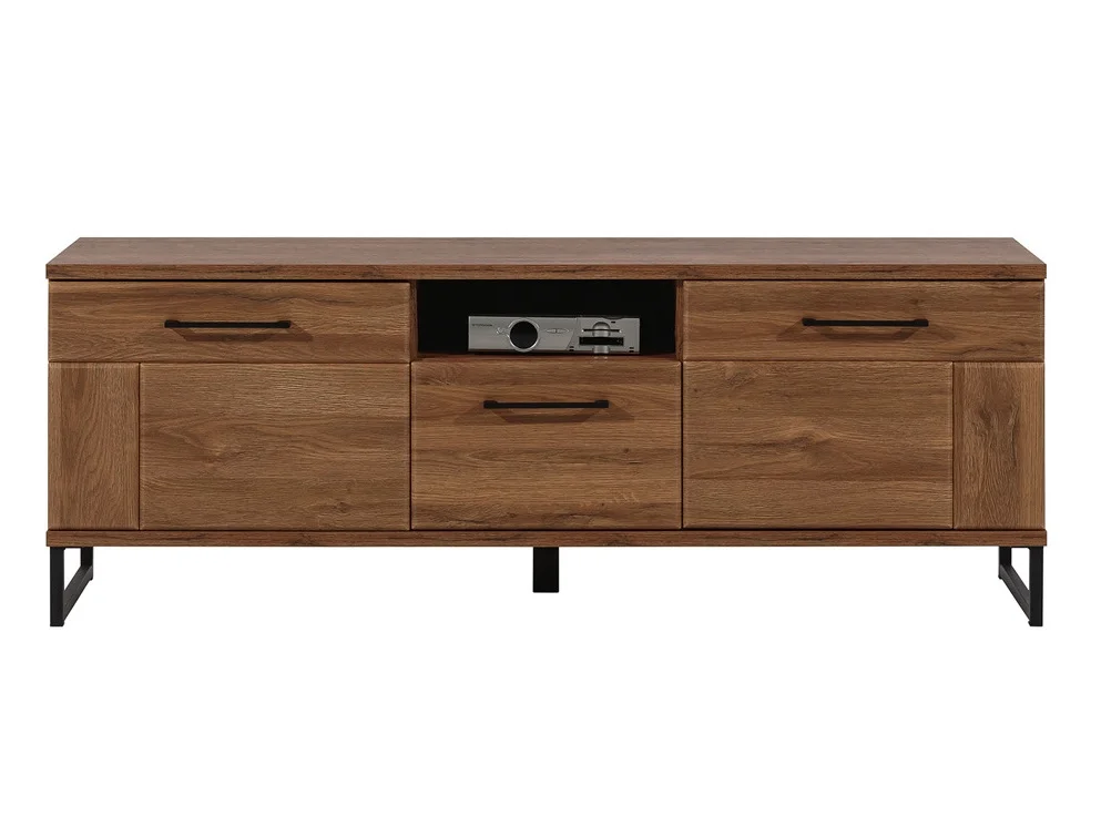 Televizní stolek v dekoru dub April měří 150,5 × 54 × 40 cm a poskytuje pohodlný prostor pro televizi i doplňky. Součástí jsou dvě dvířka a jedna zásuvka, které nabídnou praktické úložné místo pro ovladače, kabely i další drobnosti. Je vyrobený z lamina a MDF a doplňují ho kovové nohy pro stabilitu a moderní vzhled. Dodání probíhá v demontu, montáž je rychlá a jednoduchá. Záruka na výrobek je 24 měsíců.