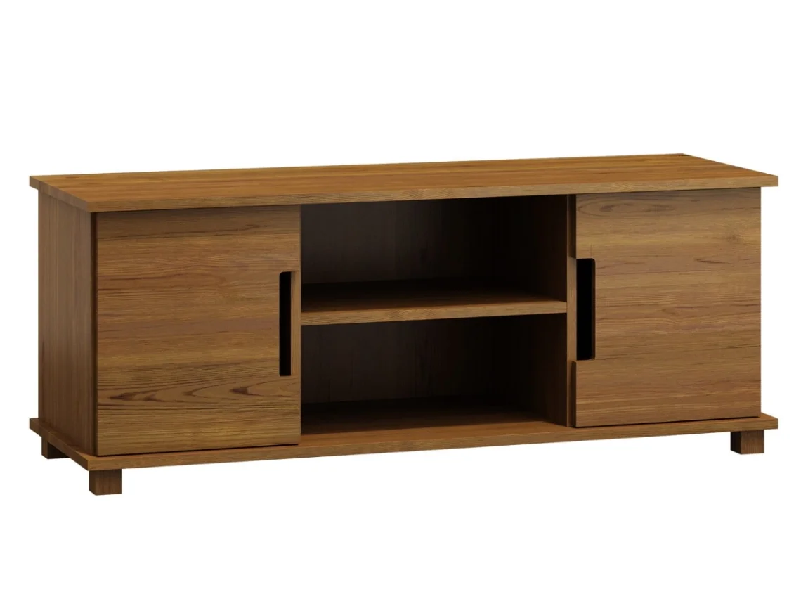 Televizní stolek TORFIN 6 je vyrobený z masiv borovice a ukrývá po každých dvířkách jednu praktickou polici. Rozměry (š x v x h) 140 × 55 × 47 cm, čtvercové nohy 5 × 5 cm zajišťují jistou stabilitu i na mírně nerovném podkladu.