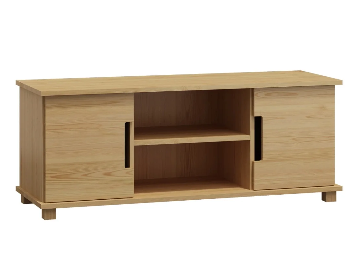 Televizní stolek TORFIN 6 je vyroben z masivní borovice a svým přírodním vzhledem dodá interiéru teplý nádech. Za každými dveřmi se nachází jedna police pro pohodlné uložení mediálních zařízení a drobných doplňků.