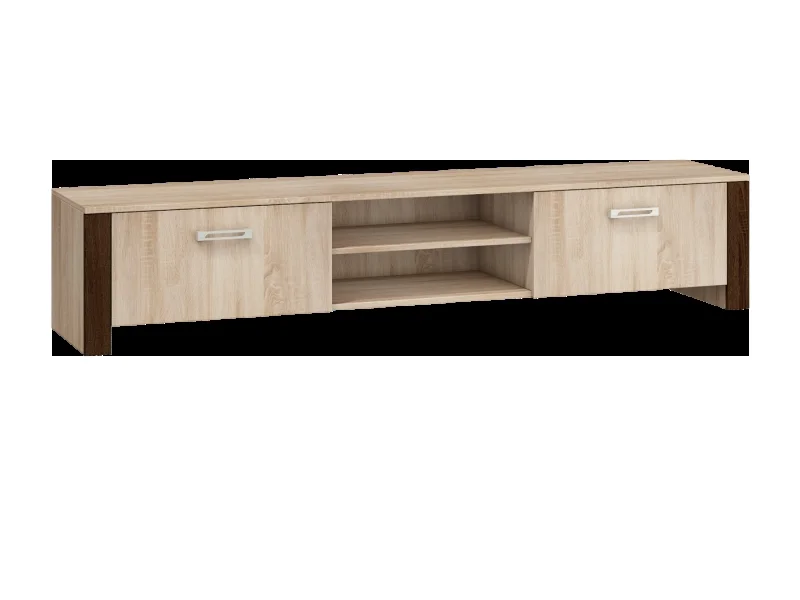 Velký televizní stolek v barevném provedení dub sonoma a tmavý dub skvěle doplní moderní obývací pokoj. Korpus LTD 16 mm s ABS hranou 0,6 mm zaručuje pevnost a dlouhou životnost při každodenním používání. Úchytky v stříbrném provedení z tvrzeného plastu dodávají nábytku nadčasový vzhled. Rozměry 200 x 40 x 44 cm pojmou televizor i praktické multimediální doplňky. Dodává se v demontu a na výrobek se vztahuje 5letá záruka, která potvrzuje jeho kvalitu.