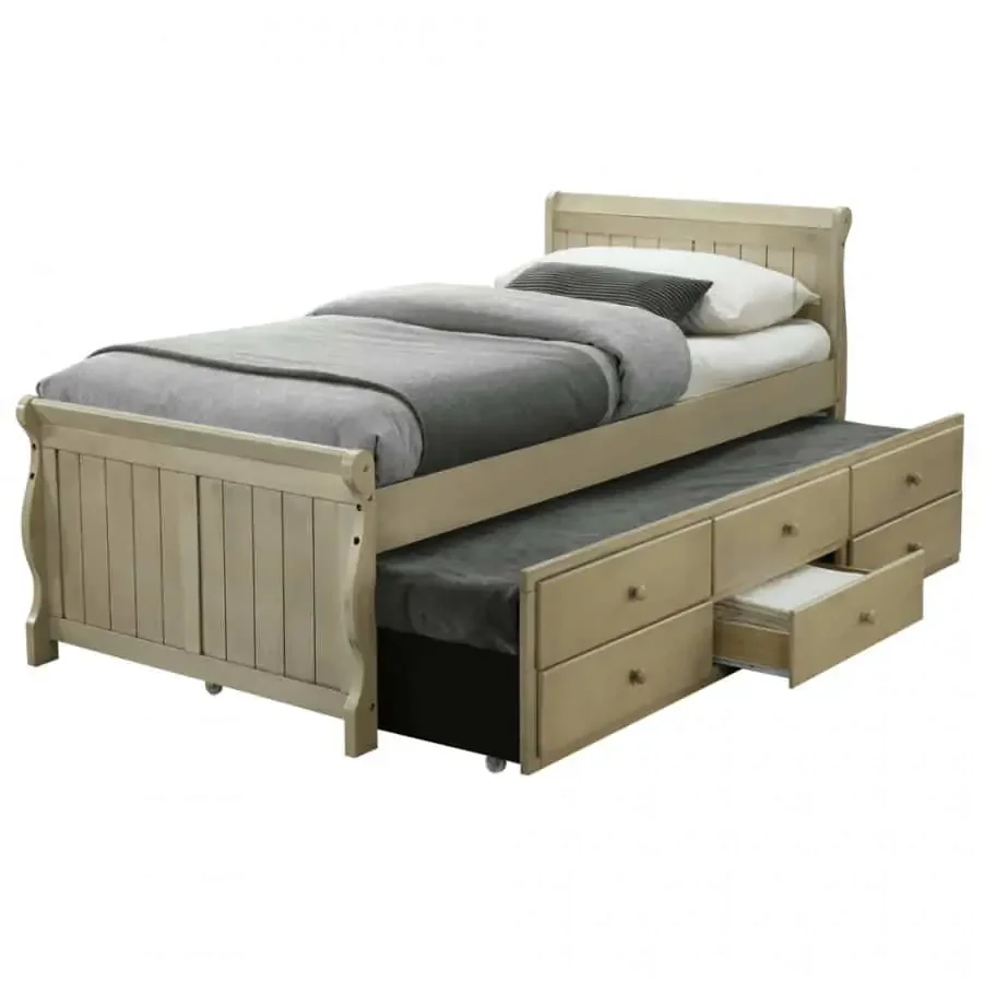 Postel ANTIKO je vyrobená z masivu doplněného MDF v provedení antická bílá, která zajišťuje pevnost i nadčasový vzhled. Skrytá přistýlka se jednoduše vysune a během okamžiku získáte druhé lůžko pro hosty. Pod postelí najdete úložný prostor tvořený třemi šuplíky, který usnadní uskladnění ložního prádla a drobných věcí. Součástí je laťkový rošt; matrace není součástí balení. Nosnost postele do 110 kg. Dodáváno v demontu. Maximální výška matrace pro přistýlku: 12 cm; výška horního lůžka po roštu je 41,8 cm a spodní lůžko má výšku 25,5 cm. Tento kousek vyniká praktickým řešením pro menší interiéry a poskytuje pohodlí hostům i vám. Díky robustní konstrukci se budete moci bezstarostně spolehnout na dlouhou životnost.