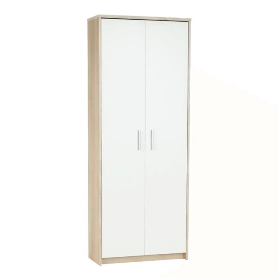 Kancelářská skříň JOHAN 2 NEW 05 nabízí praktický úložný prostor pro dokumenty a kancelářské potřeby. Po otevření dvou dveří najdete čtyři police, které efektivně rozčlení obsah. Skříň se dodává s spodním soklem a je vyrobena z kvalitní laminované DTD desky ve barevném provedení dub sonoma a bílá. Vnitřní výška pro úložné zóny se pohybuje od 32 do 34,7 cm a tloušťka materiálu dosahuje 16/22 mm. Nosnost polic je až 5 kg. Lze ji doplnit o další prvky z kancelářského programu Johan a dodává se v demontu. Díky modulárnosti můžete snadno přizpůsobit tento úložný systém potřebám vaší kanceláře.