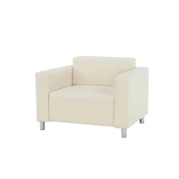 Moderní křeslo HOMKER lze použít samostatně nebo jako součást soupravy s trojsedákem a dvojsedákem. Je potažené béžovou ekokůží, která kombinuje elegantní vzhled s jednoduchou údržbou.