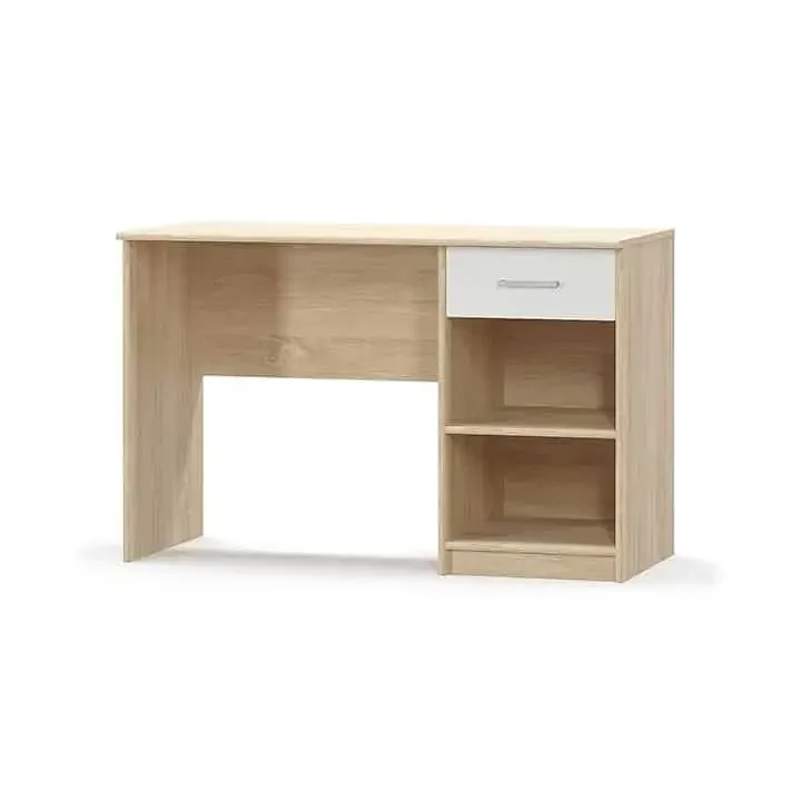 PC stůl TEYO 1S je vyrobený z laminované dřevotřískové desky v kombinaci bílé barvy a dřevěného odstínu dub sonoma, čímž působí svěže a moderně. Praktický úložný prostor zahrnuje jednu zásuvku a regál pro uspořádání pomůcek. Díky svému kompaktnímu provedení se hodí do dětských i studentských pokojů i do domácí pracovny a zároveň šetří cenný prostor. Dodáváno v demontu pro pohodlnou přepravu a jednoduchou montáž. Pro snadné sladění s vaším interiérem zajistí neutrální kombinace barev a nadčasový design, který vydrží i po několika letech používání. Snadná montáž a flexibilní vzhled dělají z TEYO spolehlivé místo pro studium a práci.