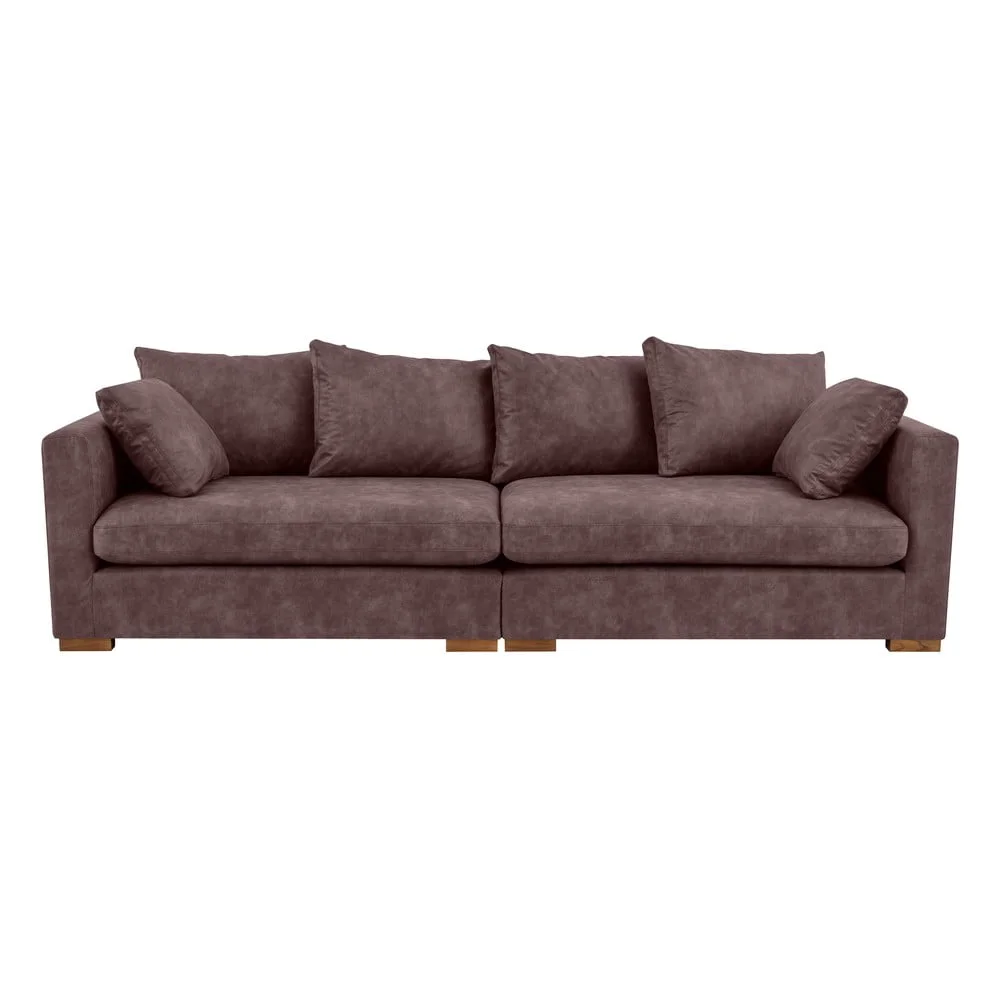 Elegantní tmavě hnědá pohovka v imitaci kůže, která nabízí komfort a styl pro váš obývací pokoj. S délkou 266 cm je ideální pro rodiny i větší prostory, přičemž její moderní design zapadne do různých interiérů.