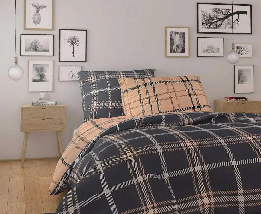 Elegantní povlečení z kvalitní 100% bavlny v tmavě hnědém odstínu s moderním kárkovým vzorem. Tato kolekce Nordic přináší kombinaci skandinávského minimalismu a přírodních motivů, ideální pro milovníky jednoduchého a stylového bydlení.