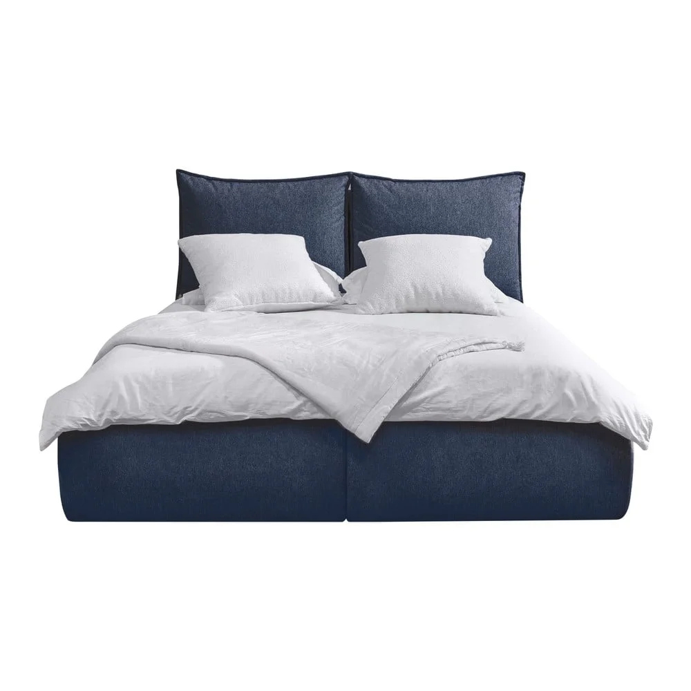 Tmavě modrá čalouněná postel 160x200 s úložným prostorem Dvoulůžkové postele