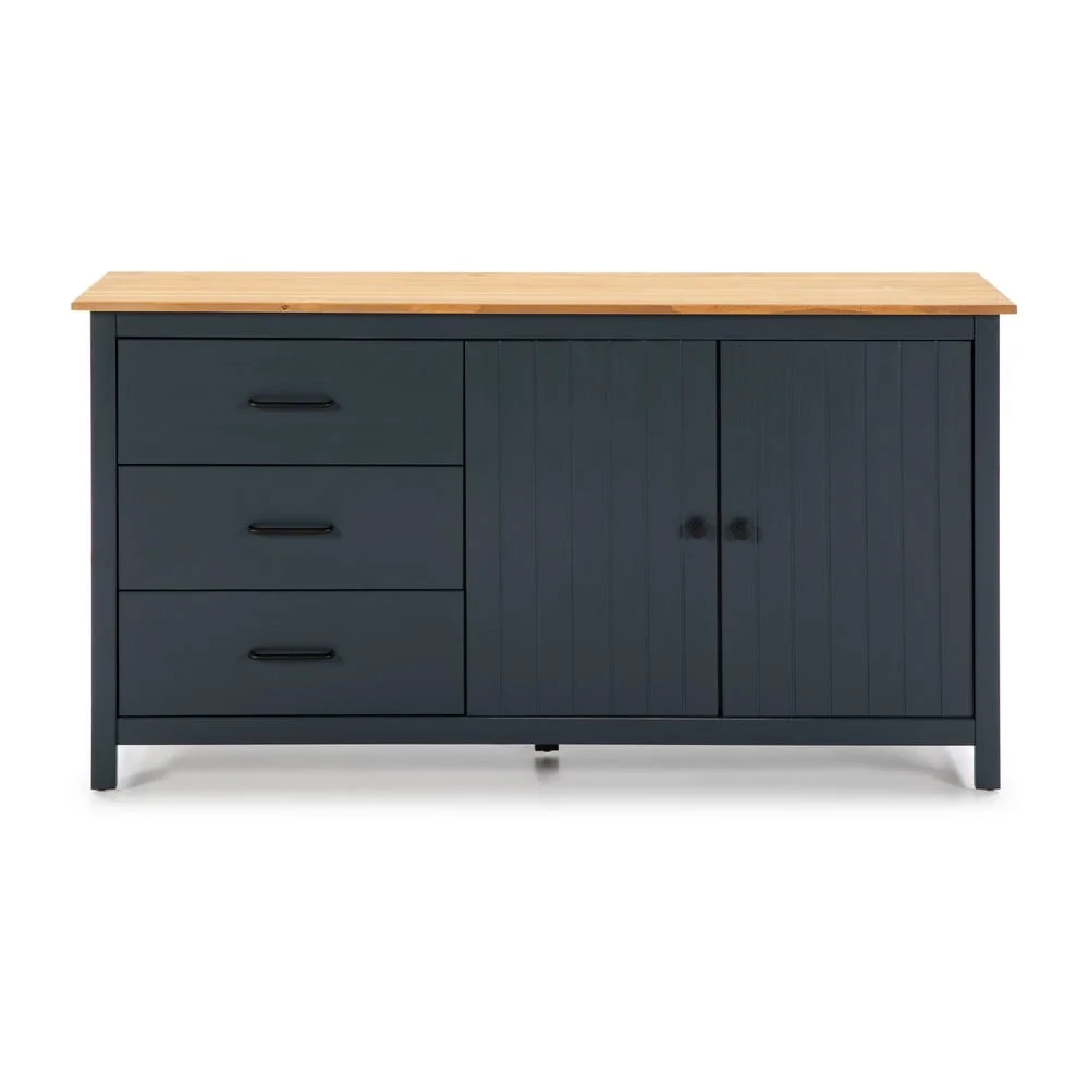 Elegantní nízká komoda ve tmavě modré barvě je vyrobena z kvalitního borovicového dřeva, které zajišťuje dlouhou životnost a stabilitu. Její rozměry 150x80 cm poskytují dostatek úložného prostoru, aniž by narušily vzhled vašeho interiéru.