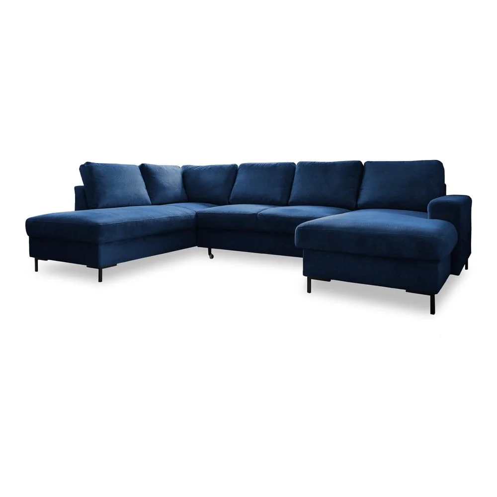 Tmavě modrá manšestrová rozkládací rohová pohovka Lofty Lilly Rohové sedací soupravy