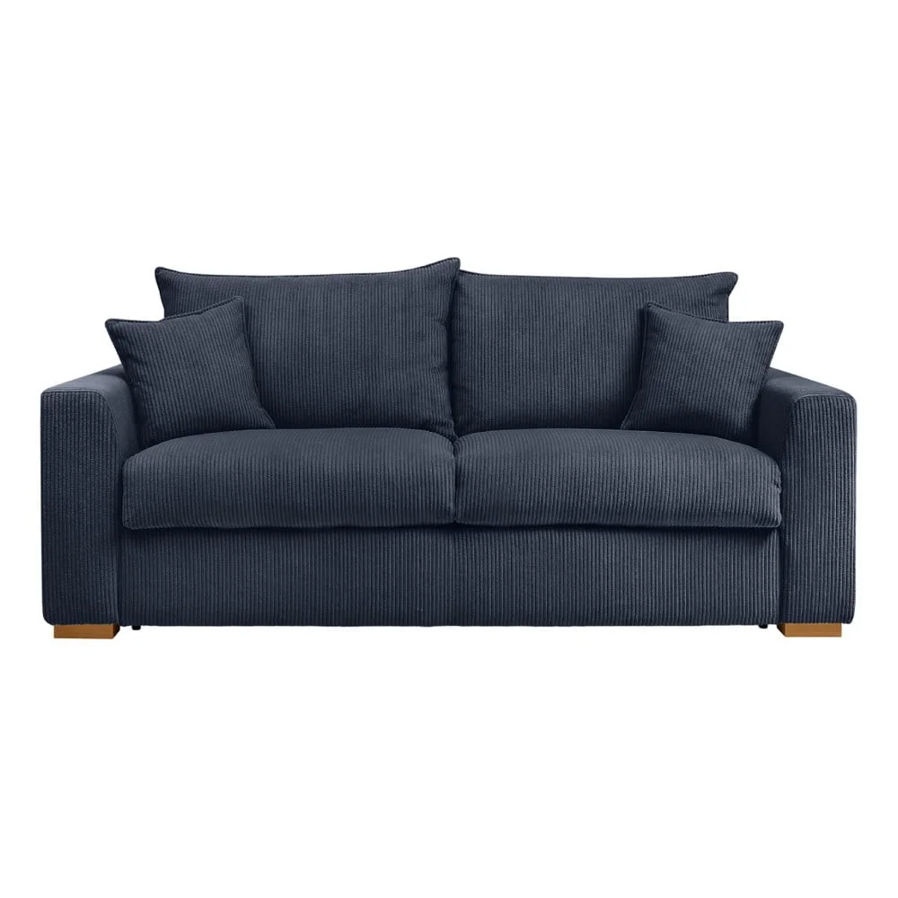 Elegantní manšestrová pohovka v tmavě modré barvě, která nabízí komfortní sezení i možnost rozložení pro spaní. S délkou 225 cm je ideální do moderních obývacích pokojů, kde spojuje styl s praktičností.