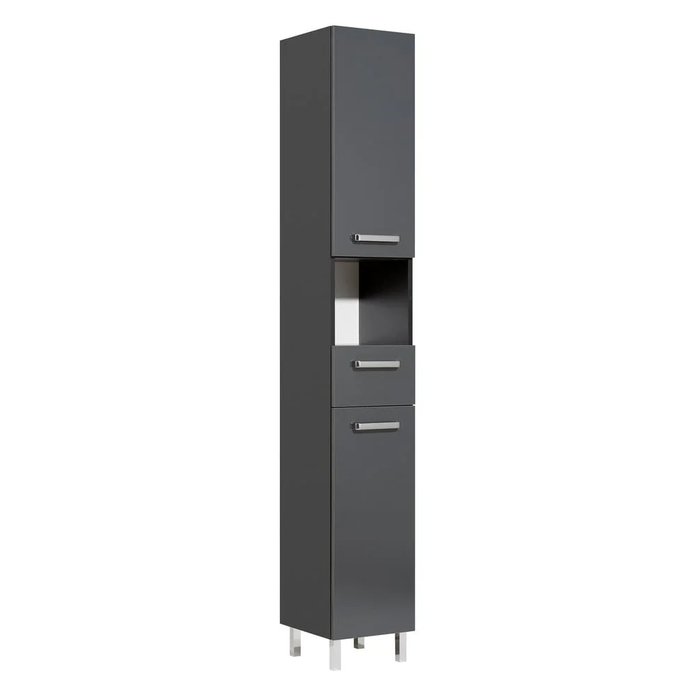 Tmavě šedá vysoká koupelnová skříňka 30x196 cm Koupelnové skříňky