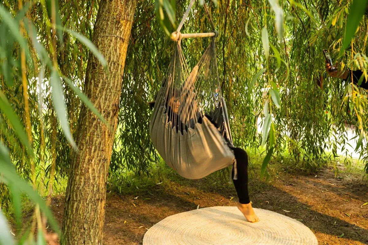 Objevte pohodlí brazilského závěsného křesla, které se chová jako designová houpací síť, jež se přizpůsobí tvaru vašeho těla a poskytne vám zasloužený relaxační zážitek. Praktická kapsa na straně poskytuje dostatek místa pro odložení telefonu, knih nebo magazínů.