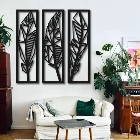 Obraz je rozdělen do tří částí, jejichž celkové rozměry a předpokládané mezery při instalaci umožňují snadné a přesné umístění na zeď. Vyroben je z kvalitní překližky s tloušťkou 4 mm, dostupný v přirozené barvě dřeva nebo s mořením dle vašeho výběru, přičemž všechny varianty jsou pouze mořené, bez laku.