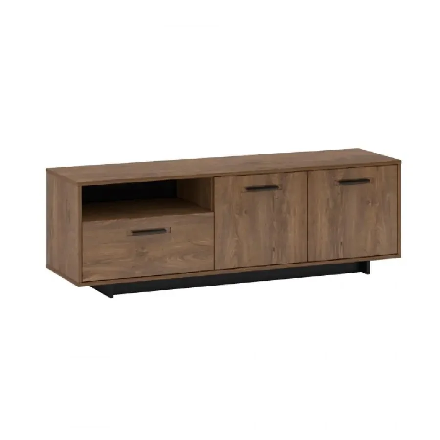 TV stolek DELIS P představuje praktické řešení pro obývací prostor s dostatkem úložného místa. Je vyroben z 16 mm silné laminované dřevotřísky a dveře tvoří MDF, což zaručuje stabilitu i moderní vzhled. V jeho útrobách naleznete jednu zásuvku, otevřený prostor a skříňku s policí pro uspořádání věcí. Lze jej snadno kombinovat s dalšími prvky z nábytkové řady Delis pro jednotný styl. Spodní prostor je od podlahy ve výšce 5 cm a dvířka se otevírají kovovými úchyty, což usnadňuje manipulaci. Dodáváno v demontu.