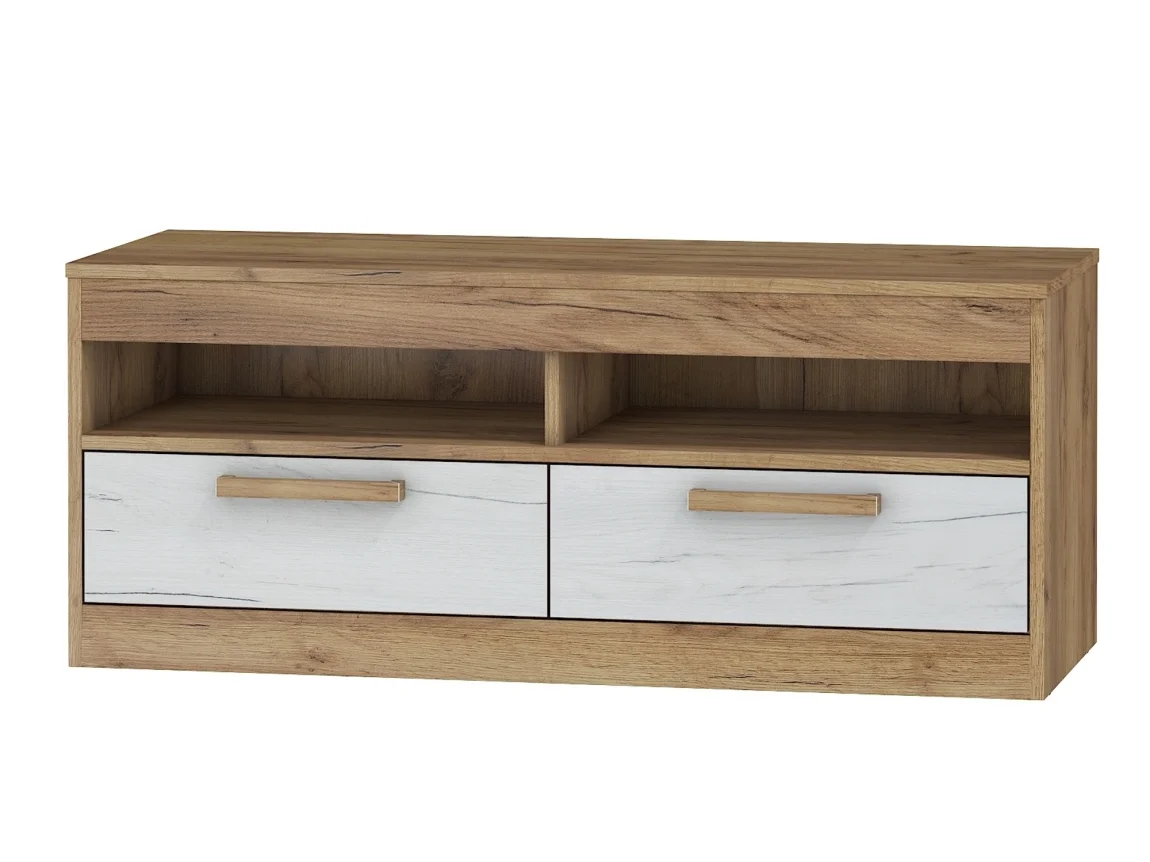 TV stolek Gatton kombinuje moderní design s praktickými rozměry a nabízí dvě zásuvky. Provedení v barvách craft zlatý a craft bílý vytváří atraktivní kontrast pro každý obývací pokoj.