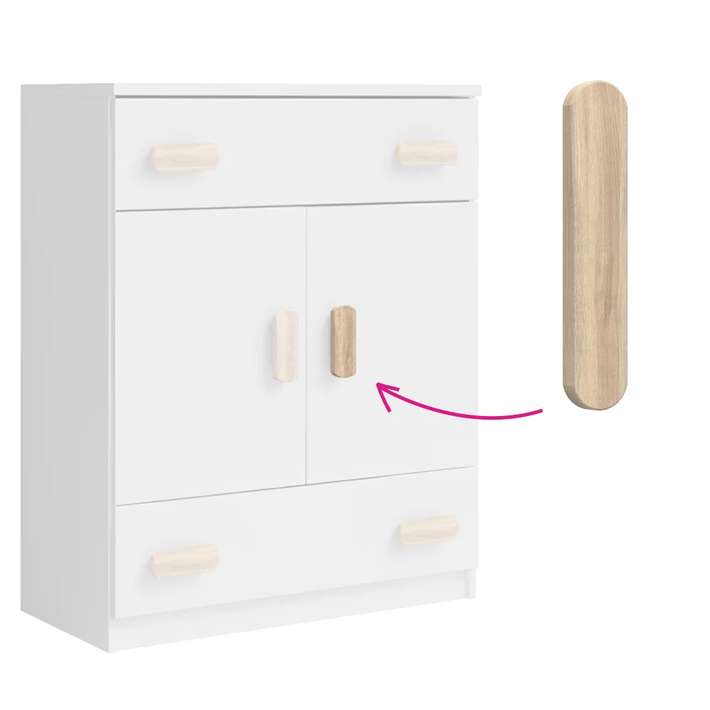 Vysoce stylové úchytky SVEND vyrobené z kvalitní DTD laminované desky dodají moderní vzhled každé skříňce. Povrch v odstínu dub sonoma působí nadčasově a snadno se sladí s širokou škálou dekorů. Rozměry: šířka 19,5 cm, výška 3,7 cm, rozteč otvorů 16,5 cm, takže výměna i instalace bývá jednoduchá. Cena platí za 1 kus a dodáváme v montážním balení, připravený pro rychlou montáž na vaši skříňku.