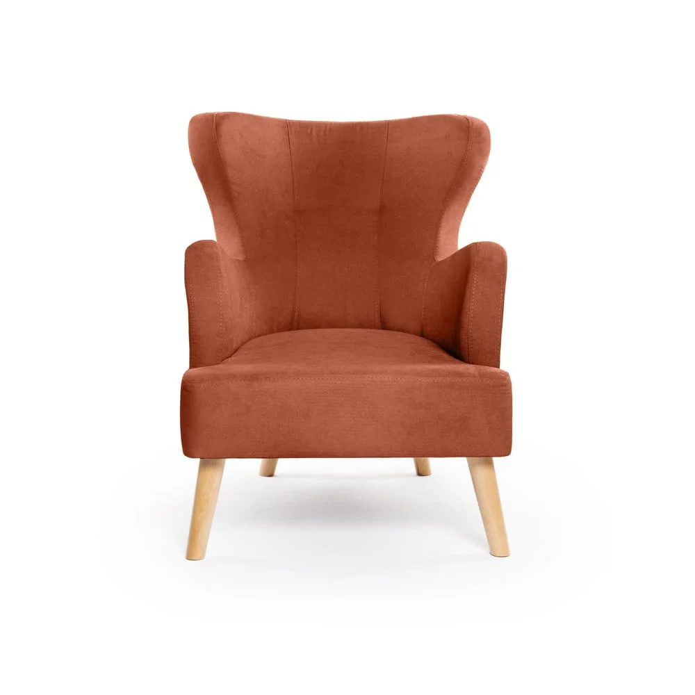 Elegantní a pohodlné křeslo ušák v moderním a minimalistickém designu je ideálním doplňkem každého obývacího pokoje. Jeho oblé a měkké hrany vás vybízejí k relaxaci a odpočinku, zatímco pevné dřevěné nohy zaručují stabilitu a dlouhou životnost. Výrazná cihlová barva potahu navíc vytváří výrazný stylový prvek, který dokonale ozvláštní váš interiér. Tento kousek je nejen praktický, ale i stylový, a stane se dominantou vašeho prostoru. Dopřejte si maximální komfort a designovou jedinečnost s tímto ušákem, který skvěle zapadne do moderní domácnosti.