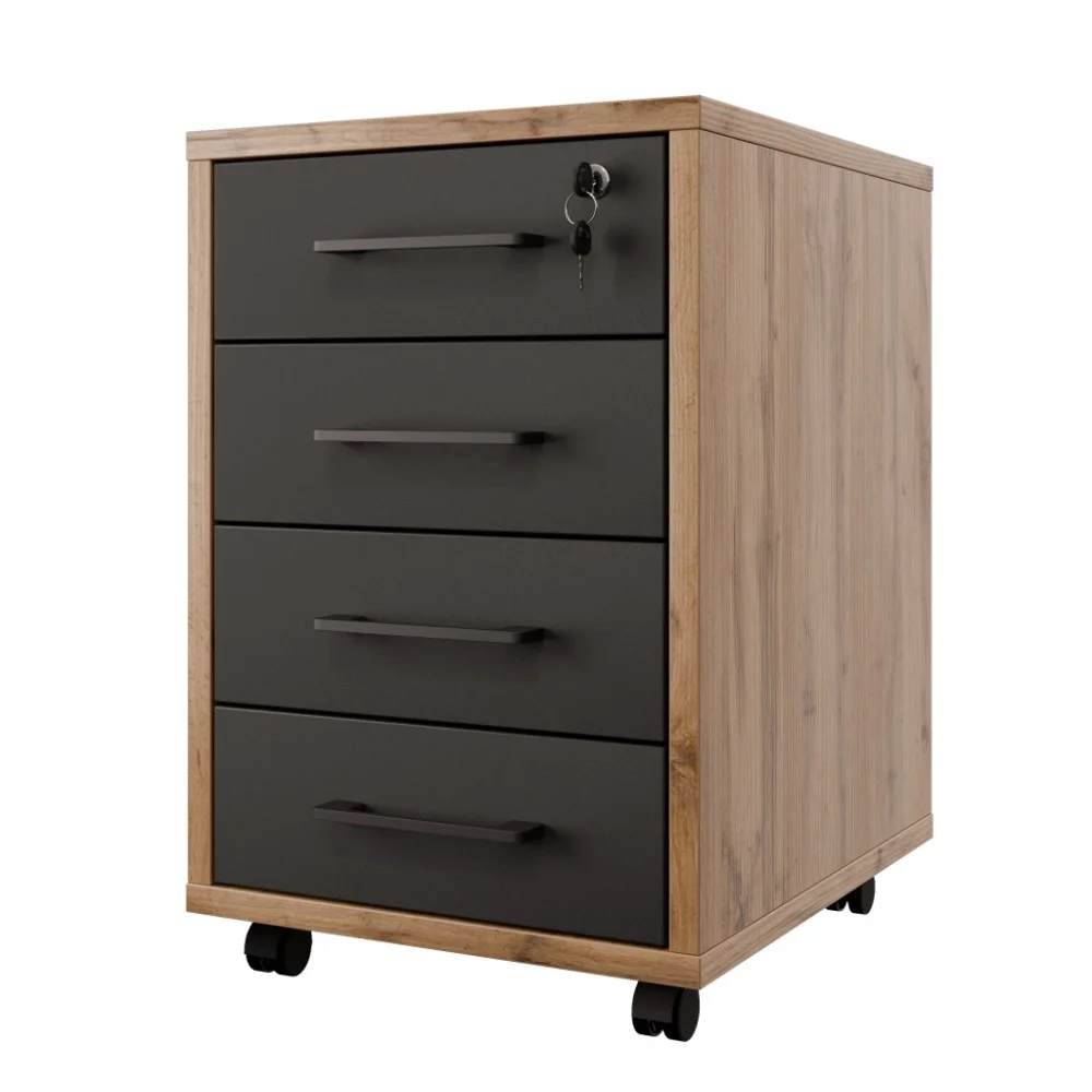 Praktický uzamykatelný kontejner ze série NEJBY GIANNI PREMIUM kombinuje decentní design s praktickým uložením pro kancelářské dokumenty. Korpus v dekoru dub wotan a čela zásuvek lze při montáži zvolit buď v antracitové, nebo dubové barvě, takže si jednoduše vytvoříte vzhled odpovídající vašemu interiéru.