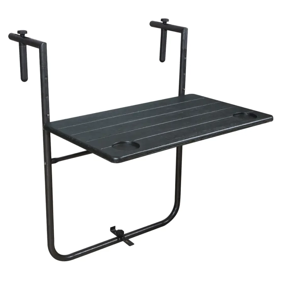 Skládací balkonový stolek UZOR je ideálním řešením pro malé balkony a terasy, kde je nutná úspora místa bez ohrožení komfortu. Rám z oceli doplňuje odolná plastová deska a výsledek se vyznačuje stabilní a odolnou konstrukcí pro venkovní použití. Černá barva působí nadčasově a hodí se do moderních i tradičních prostor. Díky nastavitelnému upevnění lze stolek bezpečně připnout na zábradlí o šířce 6,4 až 14,5 cm, čímž se prostor pod stolem uvolní pro vaše aktivity. K dispozici je také 3-stupňové nastavení výšky pro pohodlné posezení. Rozměry (ŠxHxV): 60x61x83,5 cm; Rozměry stolní desky (ŠxH): 60x36 cm; Tloušťka stolní desky: 3,7 cm; Tloušťka konstrukce: 1,2–2,2 cm; Rozměry ve složeném stavu (ŠxHxV): 60x83,5x22 cm; Doporučená šířka zábradlí: 6,4–14,5 cm; Nosnost: 20 kg; 2 držáky na sklenice; Vhodný na balkony, terasy nebo místa s omezeným prostorem; Dodáváno v demontu.