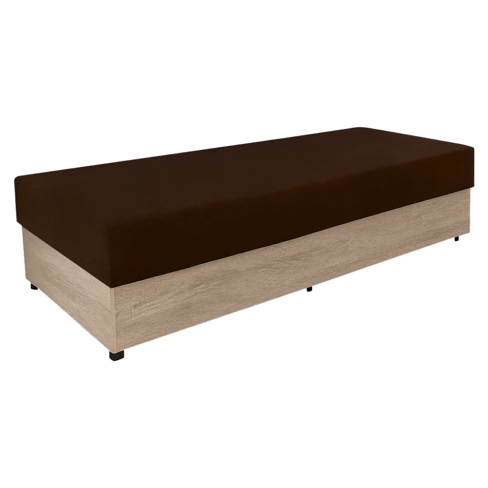 Moderní válenda KONRI nabízí komfortní spaní a praktický úložný prostor pro ukládání ložního prádla. Korpus je vyroben z lamina DTD a doplněn textilií Savana 16, která dle testu Martindale dosahuje až 80 000 oděrů, což zajišťuje dlouhou životnost. Vzhled kombinuje dub Sonoma s hnědou barvou, což působí příjemně a nadčasově. Rozměry 80 × 200 × 39 cm s plochou na spaní 80 × 200 cm a nosností až 120 kg poskytují stabilní a pohodlné lůžko pro jednotlivce. Jádro matrace tvoří kombinace pěny T28 a bonelových pružin se středně měkkou tvrdostí, takže spánek bývá pohodlný i při častém užívání. Válenda je univerzální a praktická díky bočnímu výklopnému mechanismu a je postavena na plastových černých nožkách vysokých 5 cm pro lepší stabilitu a ochranu podlahy. Dodáváme ji v montážním stavu, což usnadňuje rychlou instalaci.